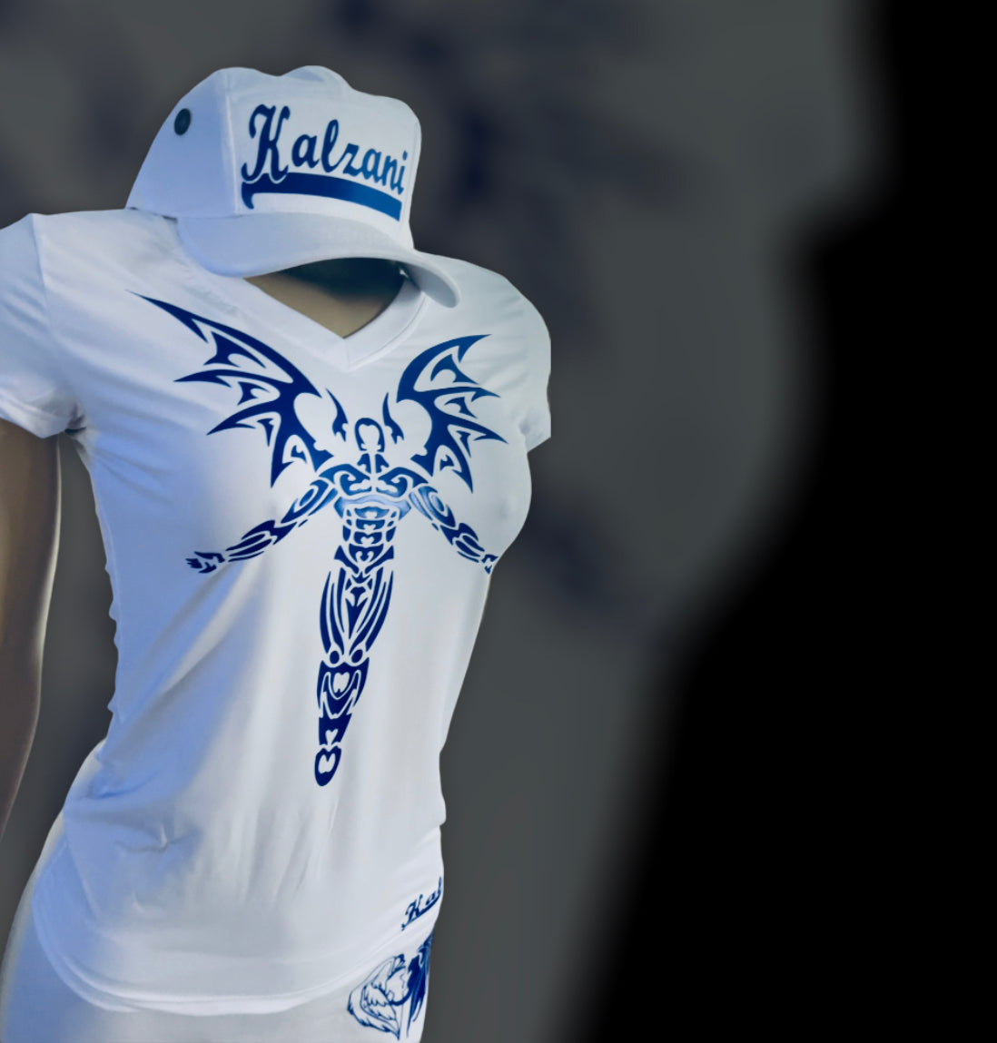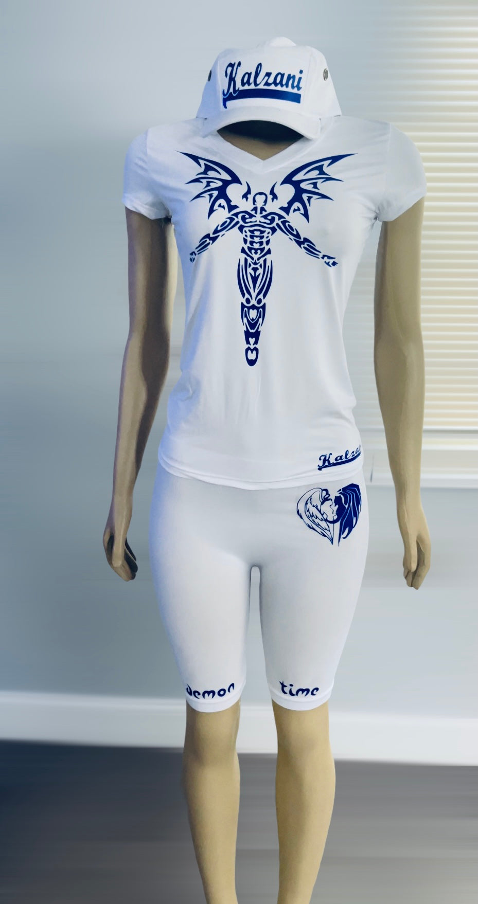 Kalzani “Demon time” royal blue and white 3 piece set.
